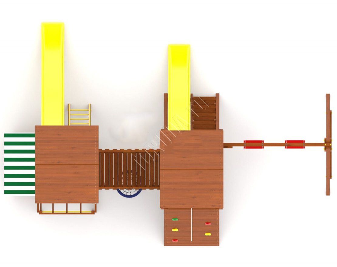 Это просторный и многофункциональный игровой комплекс, который станет центром активных развлечений для детей. Он сочетает в себе игровые, спортивные и развивающие элементы, обеспечивая интересный и безопасный досуг на свежем воздухе.