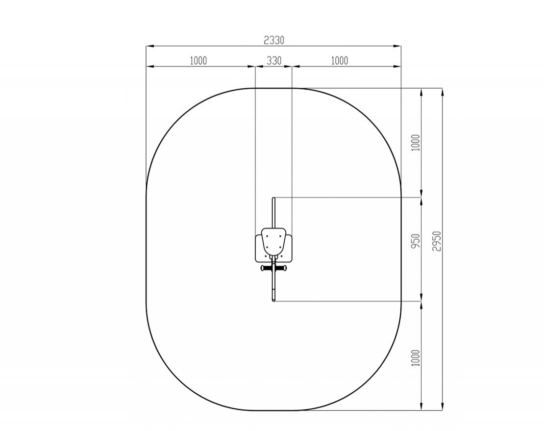 Сварной каркас из стальной трубы диаметром не менее 133 мм с толщиной стенки не менее 3,5 мм стальной трубы диаметром не менее 42 мм с толщиной стенки не менее 2,8 мм, стальной трубы диаметром не менее 32 мм с толщиной стенки не менее 2,8 мм, стальных пластин толщиной не менее 3 мм. Основание качалки соединено с пружиной, окрашено в серый цвет. Размер основания: 689х689х1020 мм.