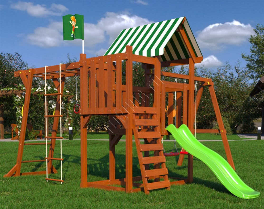 Площадка Борге 4 с песочницей обладает довольно широким функционалом (который по желанию можно легко расширить). Детская площадка предназначена для дачи, коттеджа.