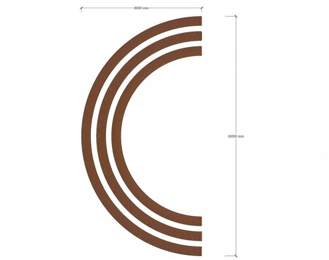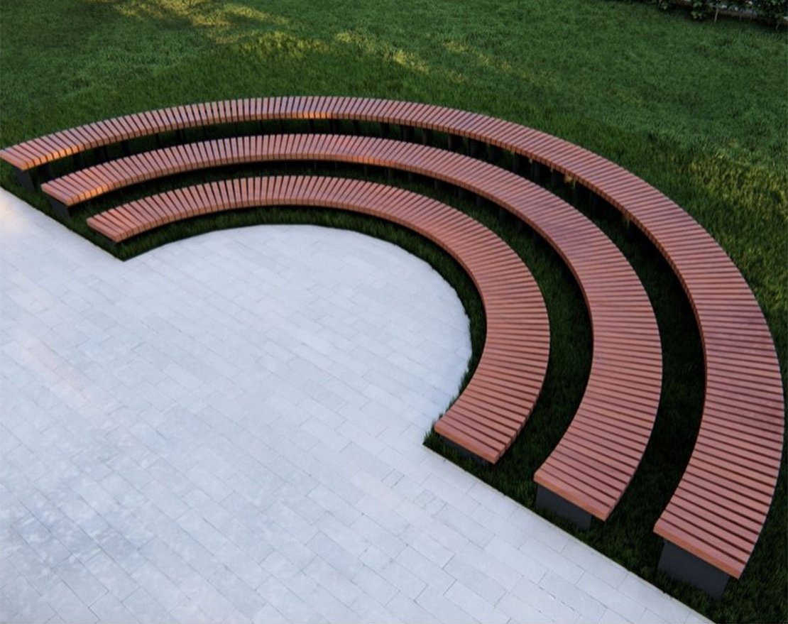 Радиус рассчитывается по внешней стороне скамейки