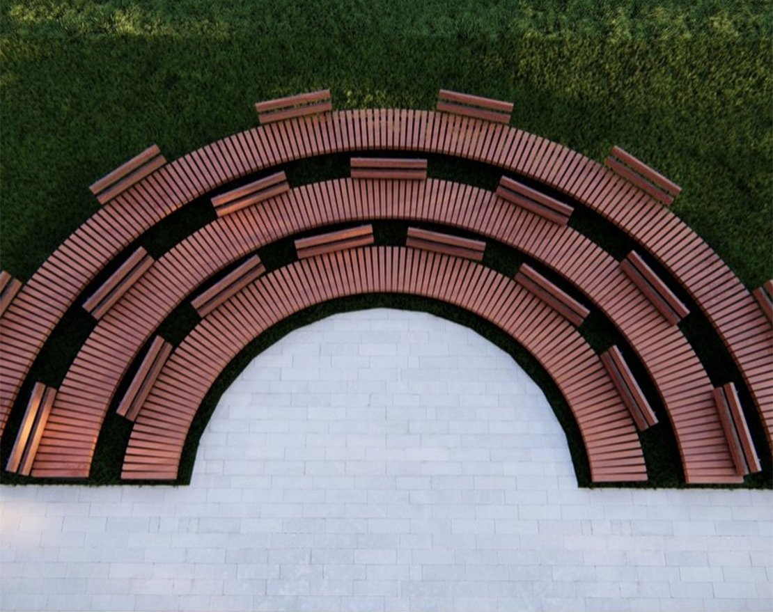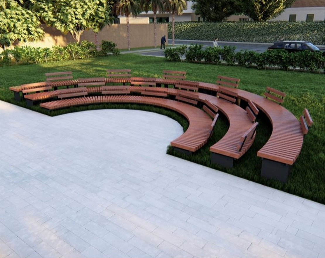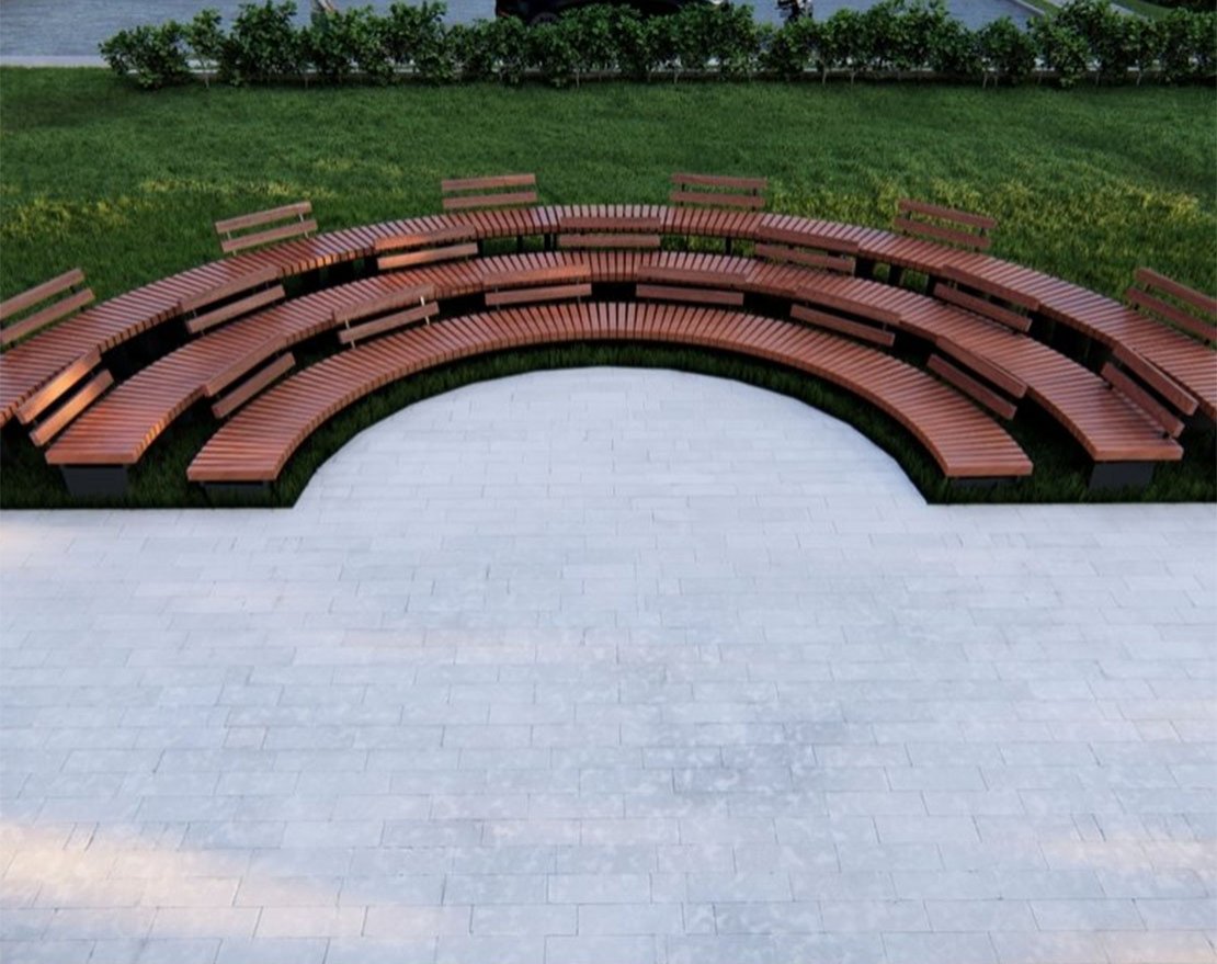 Радиус рассчитывается по внешней стороне скамейки