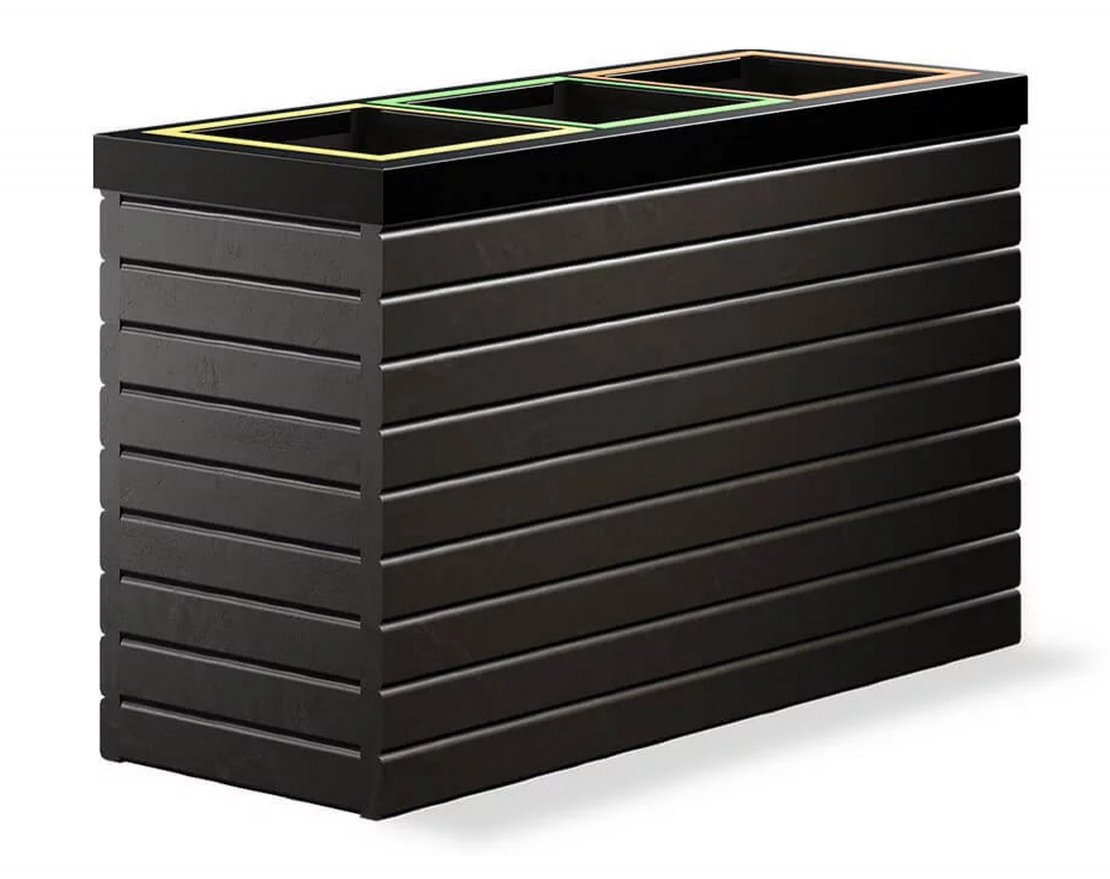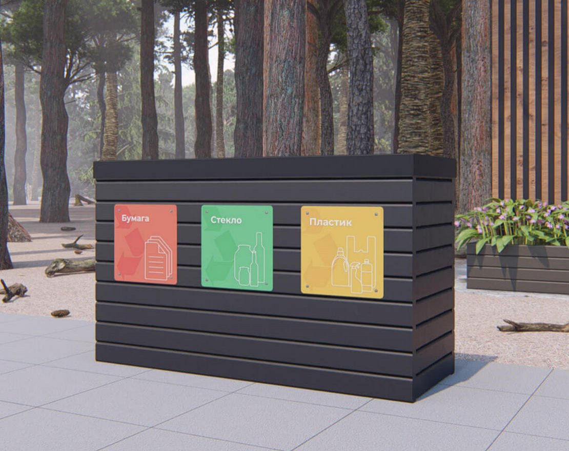 Урна для раздельного сбора мусора предназначена для сбора различных видов отходов, подходящих для переработки – пластика, бумаги, стекла. Он отличается геометричной формой и минималистичным дизайном.